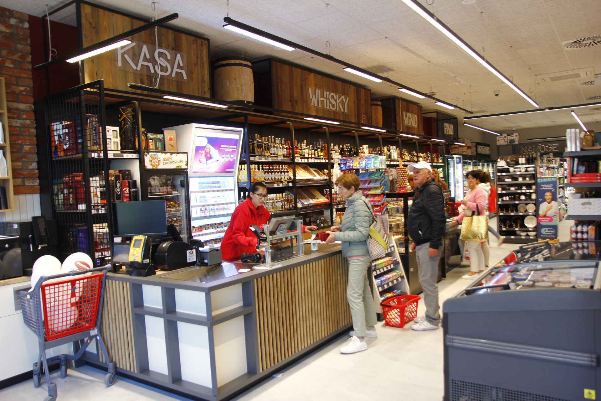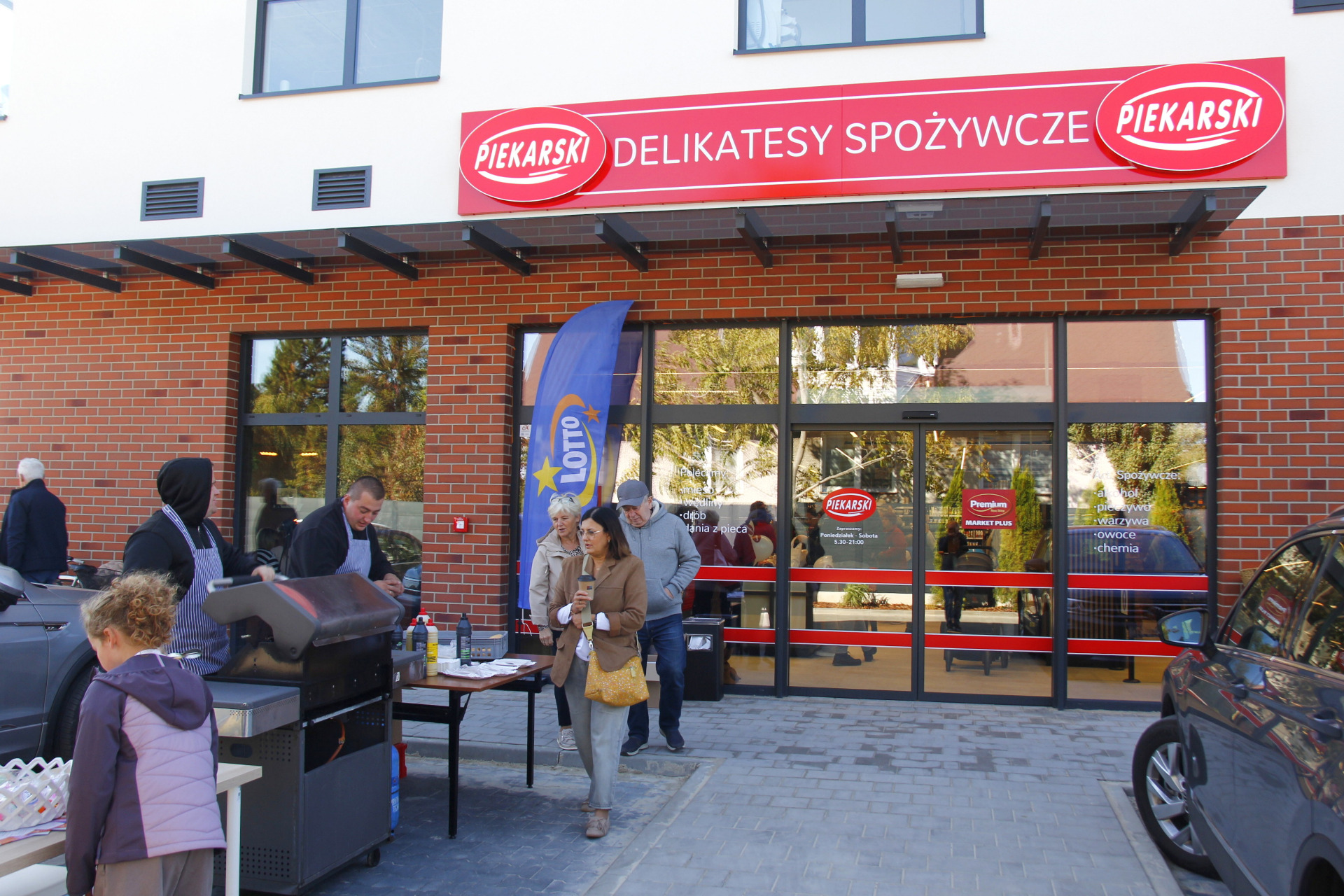 Za kawiarnią, z boku głównego budynku, ulokowały się z kolei Delikatesy Spożywcze PIEKARSKI oraz tuż za nimi sklep obuwniczy „u Budlewskiego”. W Delikatesach, poza mięsem, nabiałem, pieczywem czy warzywami, dostępne są także artykuły gospodarstwa domowego oraz chemia. W sobotę, by podkreślić wielkie otwarcie, właściciele kusili kiełbaską z grilla, oczywiście było to mięso wyłącznie od polskich dostawców.