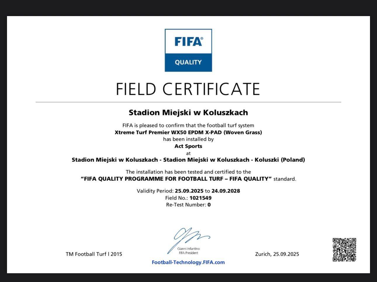 Już dziś wiadomo, że stadion otrzymał certyfikat FIFA, co dopuszcza boisko do rozgrywek na różnych poziomach, od amatorskich po profesjonalne. Jest również gwarantem jakości i dłuższej żywotności. Obok głównej murawy wkrótce uniesie się również balon, tworząc z bocznego, treningowego boiska halę pneumatyczną. Po zimie dmuchane zadaszenie będzie demontowane.