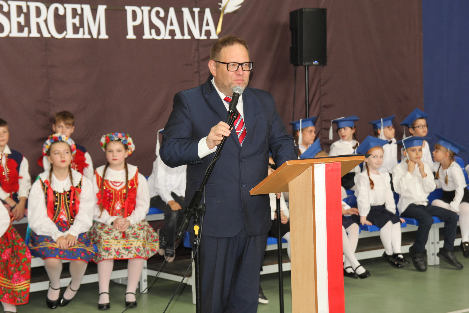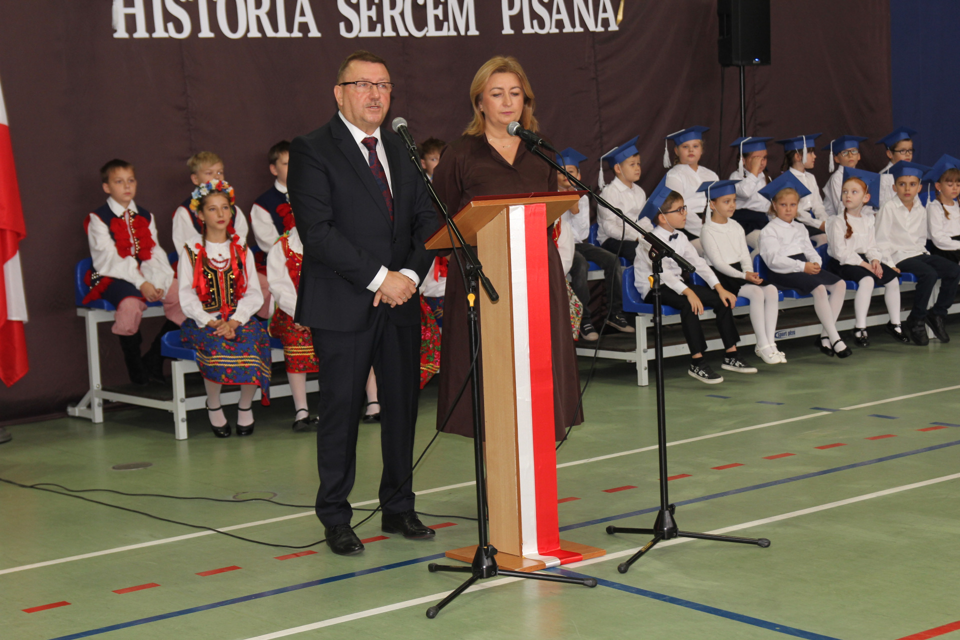 Podczas Gali głos zabrał zastępca burmistrza, starosta i wicekurator oświaty. Po poczęstunku tortem urodzinowym do wspólnego zdjęcia stanęli najmłodsi- uczniowie klas Pierwszych, którzy tego dnia złożyli ślubowanie i zostali pasowani na uczniów Szkoły. Relację z tej części wydarzenia opublikujemy za tydzień.