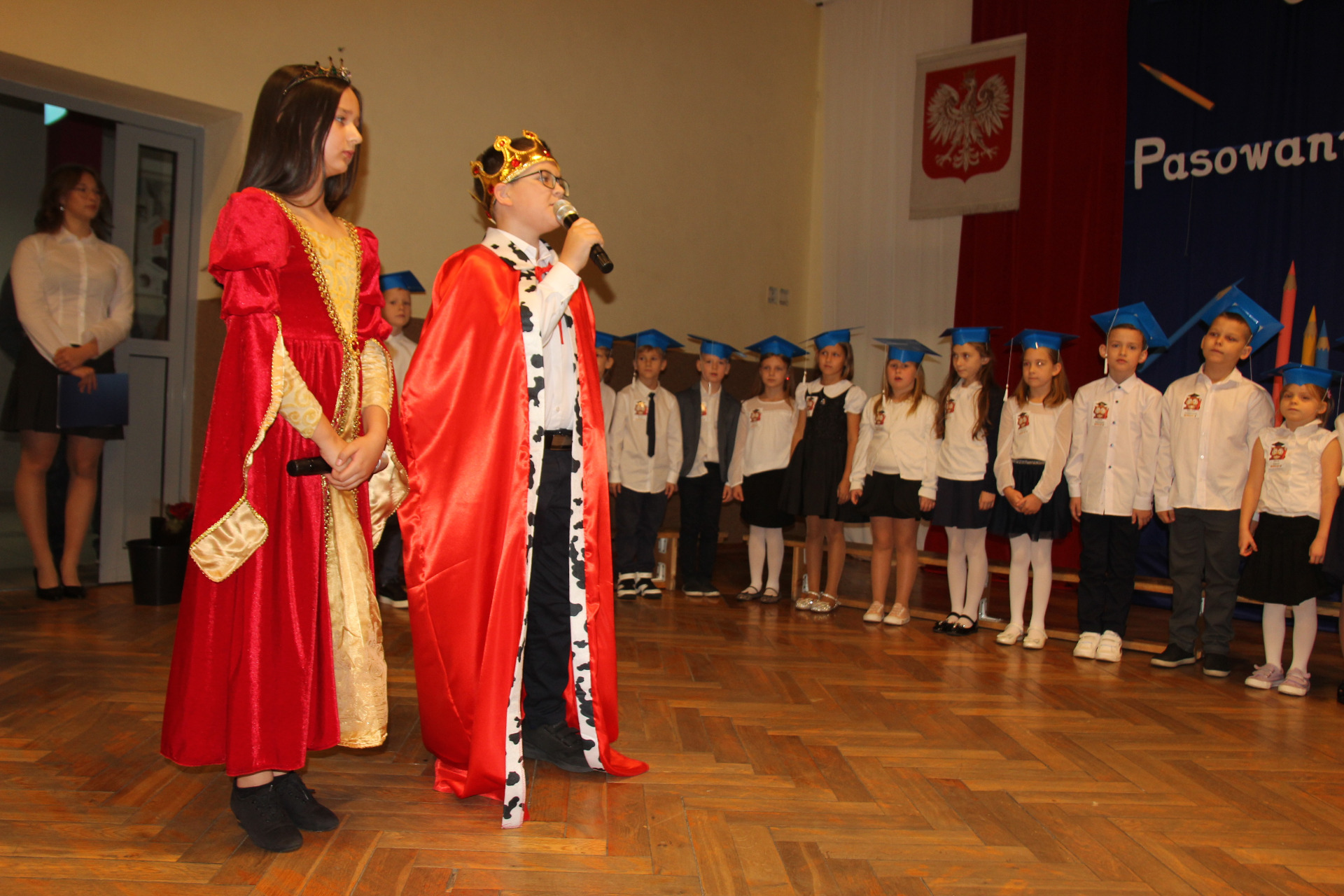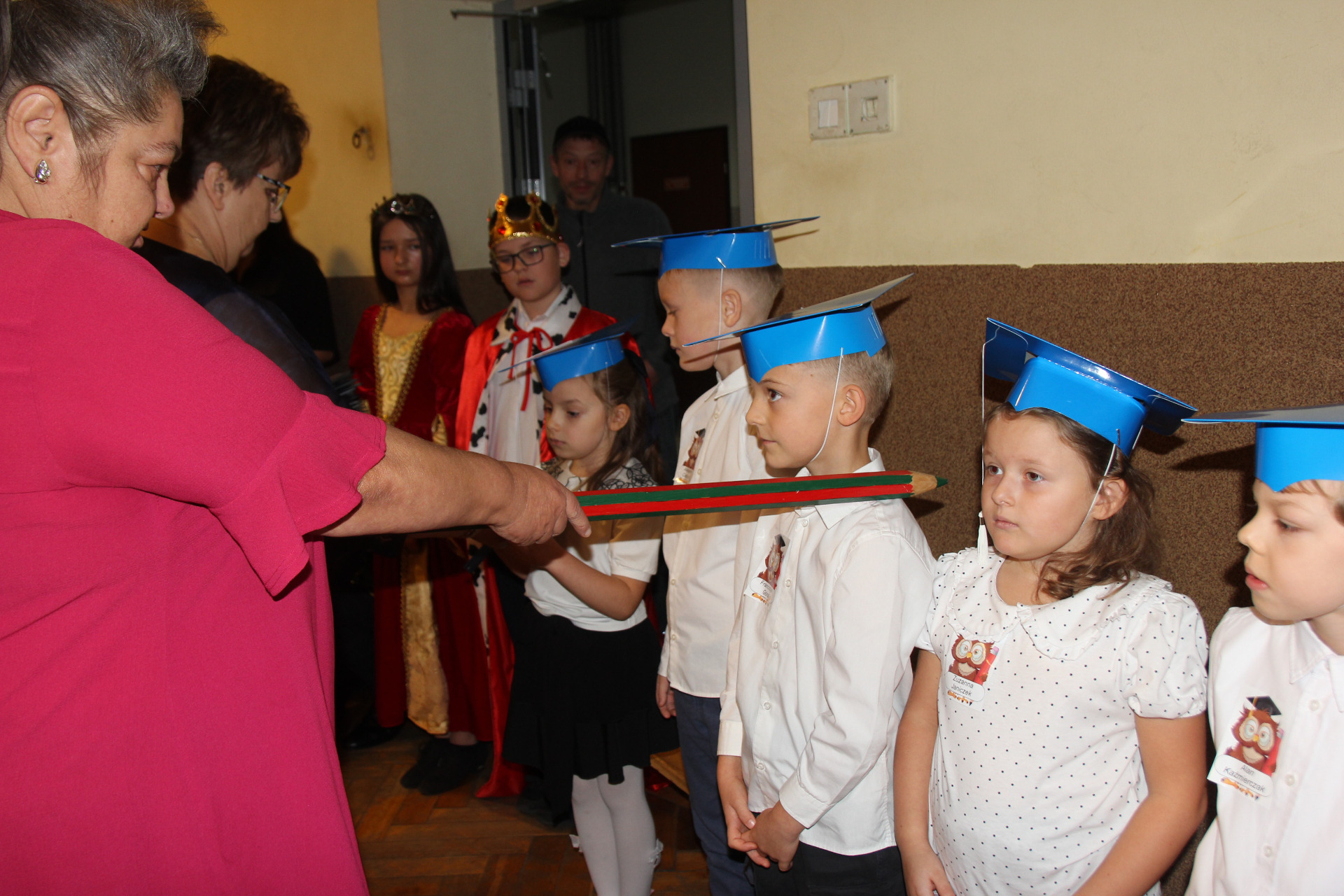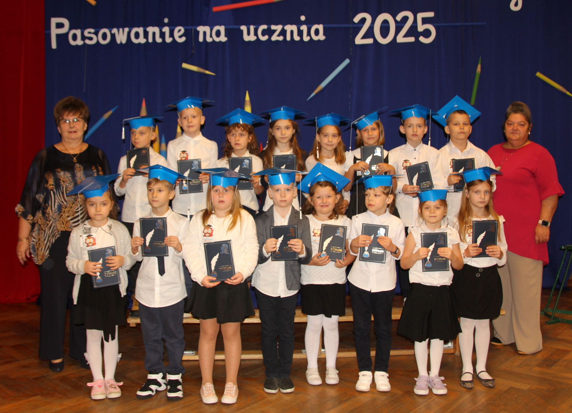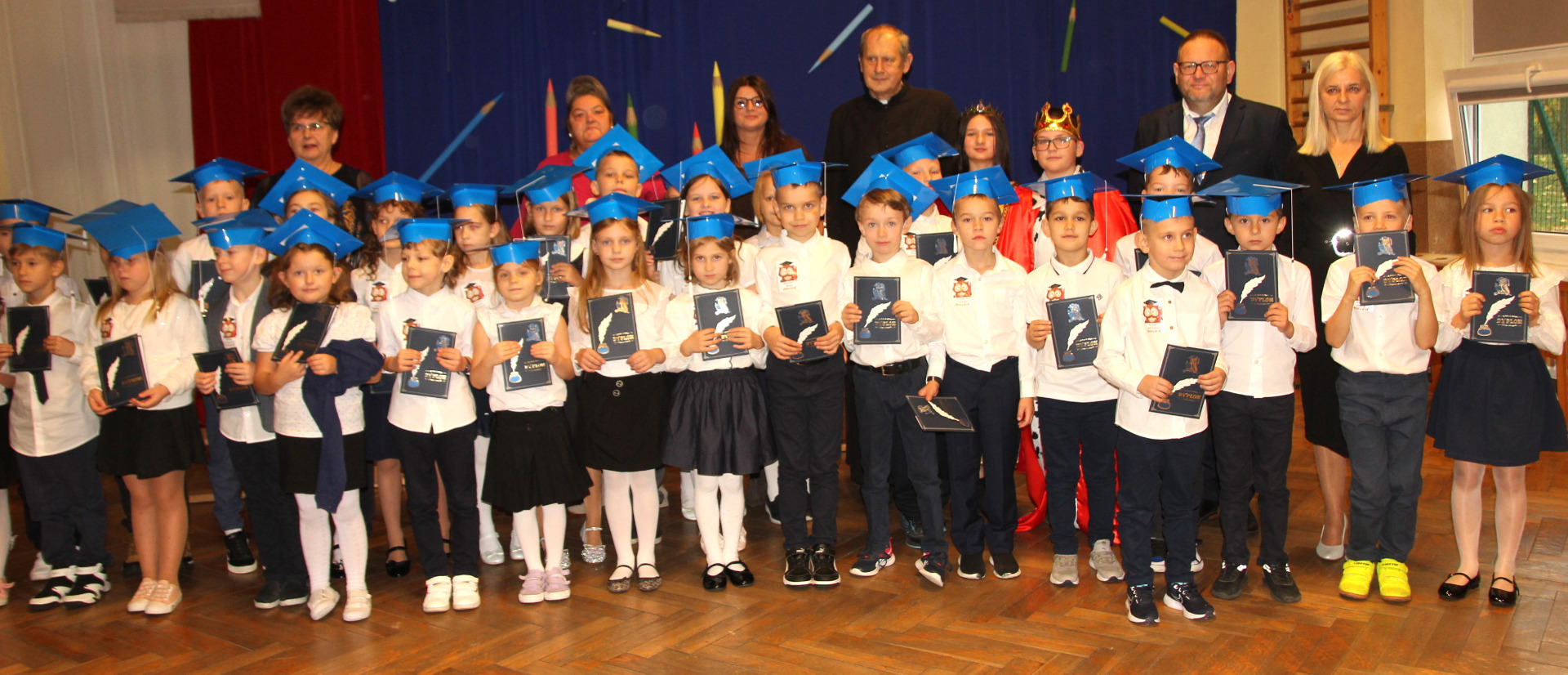 24 października w Szkole Podstawowej im. Juliana Tuwima w Różycy odbyła się niezwykle uroczysta i radosna chwila – pasowanie na ucznia. Tego dnia najmłodsi podopieczni, klasy Ia i Ib, rozpoczęli swoją szkolną przygodę, symbolicznie wstępując na barwną drogę zdobywania wiedzy. Zanim zostali przyjęci do grona społeczności szkolnej, musieli zmierzyć się z niełatwym zadaniem przygotowanym przez Jego Wysokość Króla Ołówkonosa i Jego Małżonkę. Odświętnie ubrani, pełni emocji i zapału, pierwszoklasiści z dumą prezentowali swoje talenty. Recytowali wiersze, śpiewali piosenki i popisywali się wiadomościami, które zdążyli już przyswoić podczas pierwszych tygodni nauki. Zgromadzona publiczność, a także królewska para, z uznaniem oklaskiwała występy dzieci. Wszyscy zgodnie przyznali, że uczniowie wspaniale poradzili sobie z powierzonymi zadaniami. Kulminacyjnym momentem spotkania było uroczyste ślubowanie. W atmosferze skupienia i wzruszenia pierwszoklasiści przyrzekali być pilni, uczciwi i godnie reprezentować swoją szkołę. Następnie Pani Dyrektor Aneta Mrówka dokonała aktu pasowania symbolicznym, ogromnym ołówkiem, czym przypieczętowała ich wejście w nowy etap życia. Wśród zaproszonych gości obecni byli wiceburmistrz Koluszek Tomasz Krawczyk oraz proboszcz parafii w Kaletniku, ks. Stefan Majewski. Pierwszy z nich skierował do dzieci ciepłe słowa otuchy i przekazał każdej klasie upominek – bilet do kina. Drugi uczcił tę wyjątkową chwilę uroczystą mszą świętą, odprawioną w intencji pomyślności pierwszoklasistów. Po zakończeniu oficjalnej części dzieci otrzymały pamiątkowe dyplomy i legitymacje szkolne. Następnie w towarzystwie rodziców, wychowawczyń i gości udały się do swoich klas, gdzie czekał słodki poczęstunek. To był dzień pełen wzruszeń, radości i dumy – chwila, która na długo pozostanie w pamięci uczniów i ich bliskich.