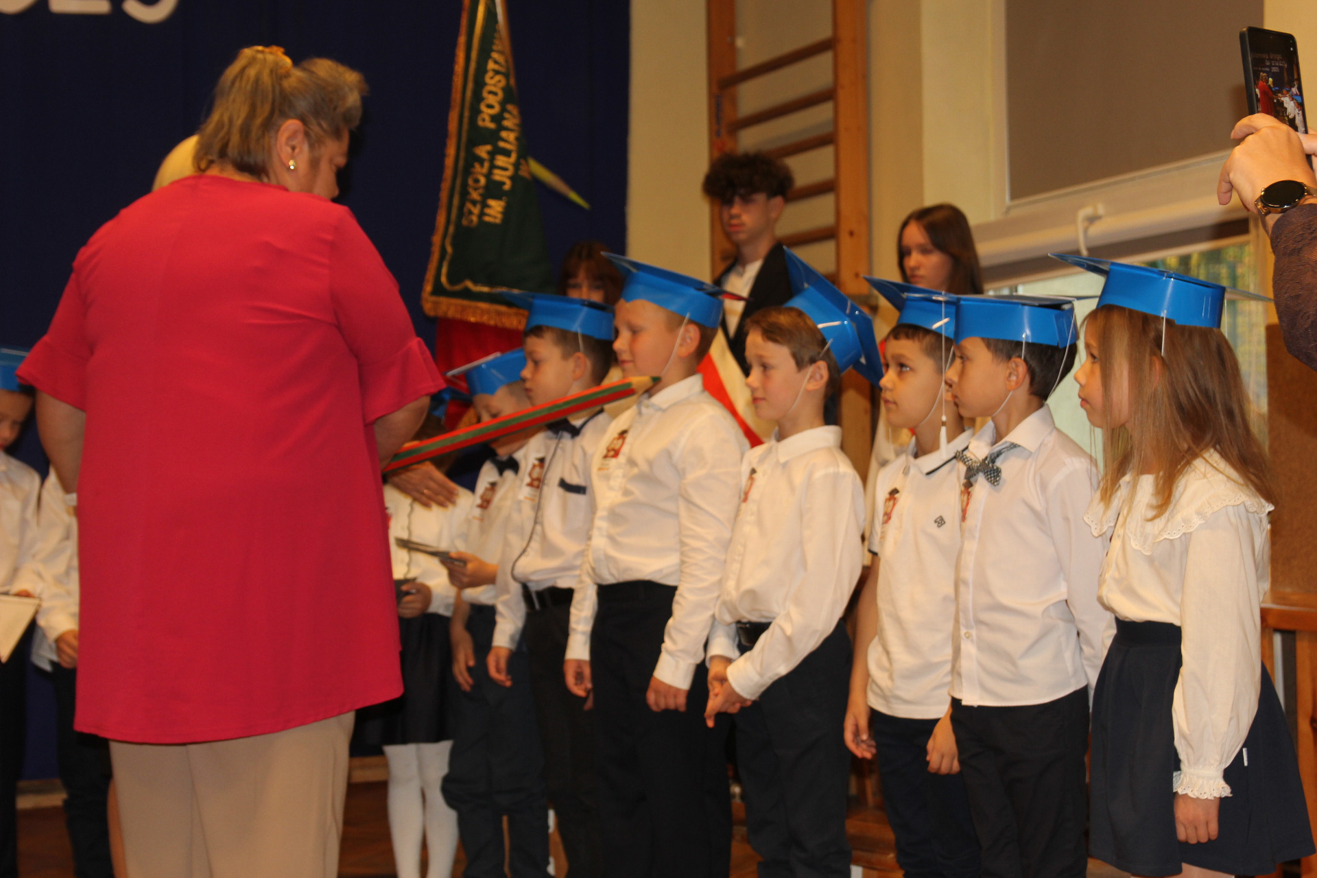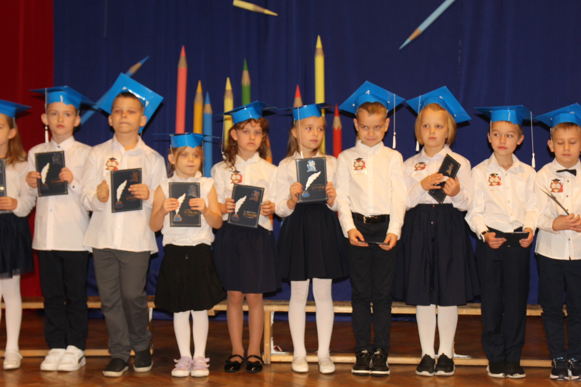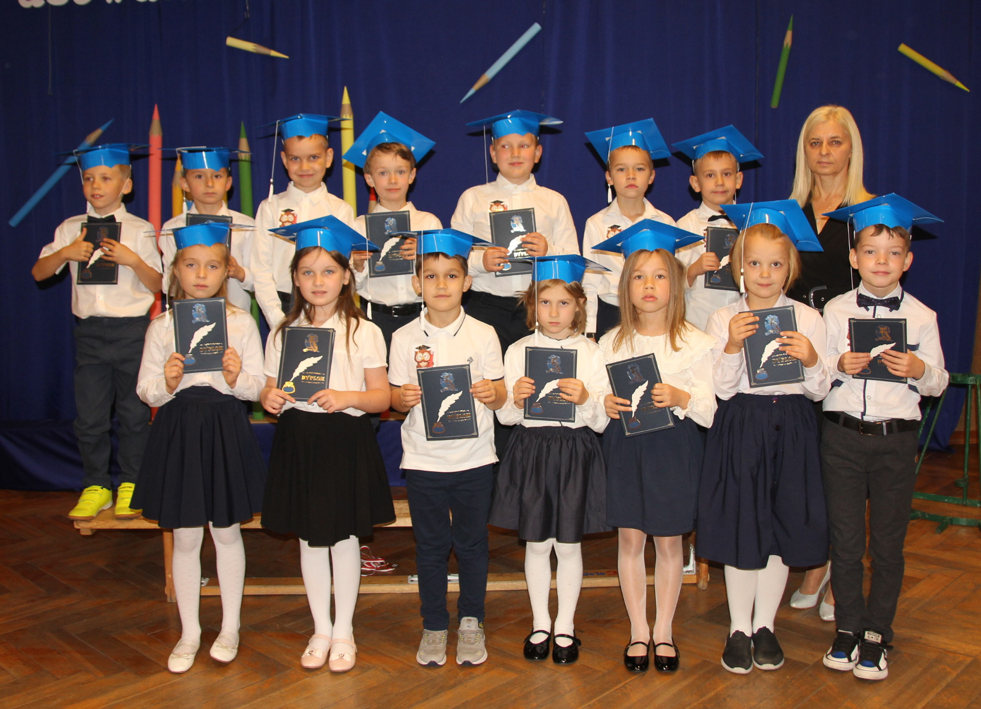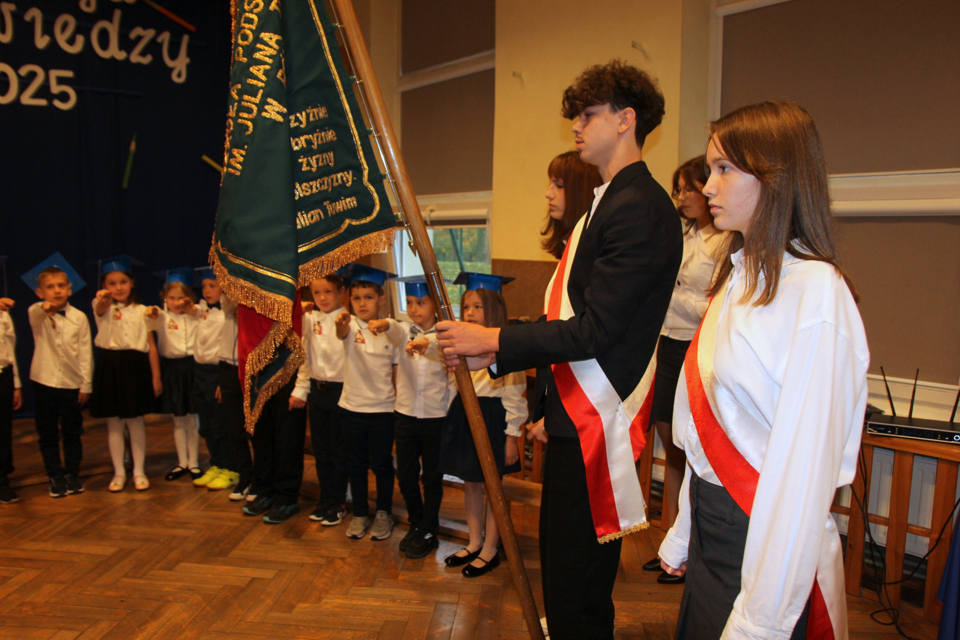 24 października w Szkole Podstawowej im. Juliana Tuwima w Różycy odbyła się niezwykle uroczysta i radosna chwila – pasowanie na ucznia. Tego dnia najmłodsi podopieczni, klasy Ia i Ib, rozpoczęli swoją szkolną przygodę, symbolicznie wstępując na barwną drogę zdobywania wiedzy. Zanim zostali przyjęci do grona społeczności szkolnej, musieli zmierzyć się z niełatwym zadaniem przygotowanym przez Jego Wysokość Króla Ołówkonosa i Jego Małżonkę. Odświętnie ubrani, pełni emocji i zapału, pierwszoklasiści z dumą prezentowali swoje talenty. Recytowali wiersze, śpiewali piosenki i popisywali się wiadomościami, które zdążyli już przyswoić podczas pierwszych tygodni nauki. Zgromadzona publiczność, a także królewska para, z uznaniem oklaskiwała występy dzieci. Wszyscy zgodnie przyznali, że uczniowie wspaniale poradzili sobie z powierzonymi zadaniami. Kulminacyjnym momentem spotkania było uroczyste ślubowanie. W atmosferze skupienia i wzruszenia pierwszoklasiści przyrzekali być pilni, uczciwi i godnie reprezentować swoją szkołę. Następnie Pani Dyrektor Aneta Mrówka dokonała aktu pasowania symbolicznym, ogromnym ołówkiem, czym przypieczętowała ich wejście w nowy etap życia. Wśród zaproszonych gości obecni byli wiceburmistrz Koluszek Tomasz Krawczyk oraz proboszcz parafii w Kaletniku, ks. Stefan Majewski. Pierwszy z nich skierował do dzieci ciepłe słowa otuchy i przekazał każdej klasie upominek – bilet do kina. Drugi uczcił tę wyjątkową chwilę uroczystą mszą świętą, odprawioną w intencji pomyślności pierwszoklasistów. Po zakończeniu oficjalnej części dzieci otrzymały pamiątkowe dyplomy i legitymacje szkolne. Następnie w towarzystwie rodziców, wychowawczyń i gości udały się do swoich klas, gdzie czekał słodki poczęstunek. To był dzień pełen wzruszeń, radości i dumy – chwila, która na długo pozostanie w pamięci uczniów i ich bliskich.