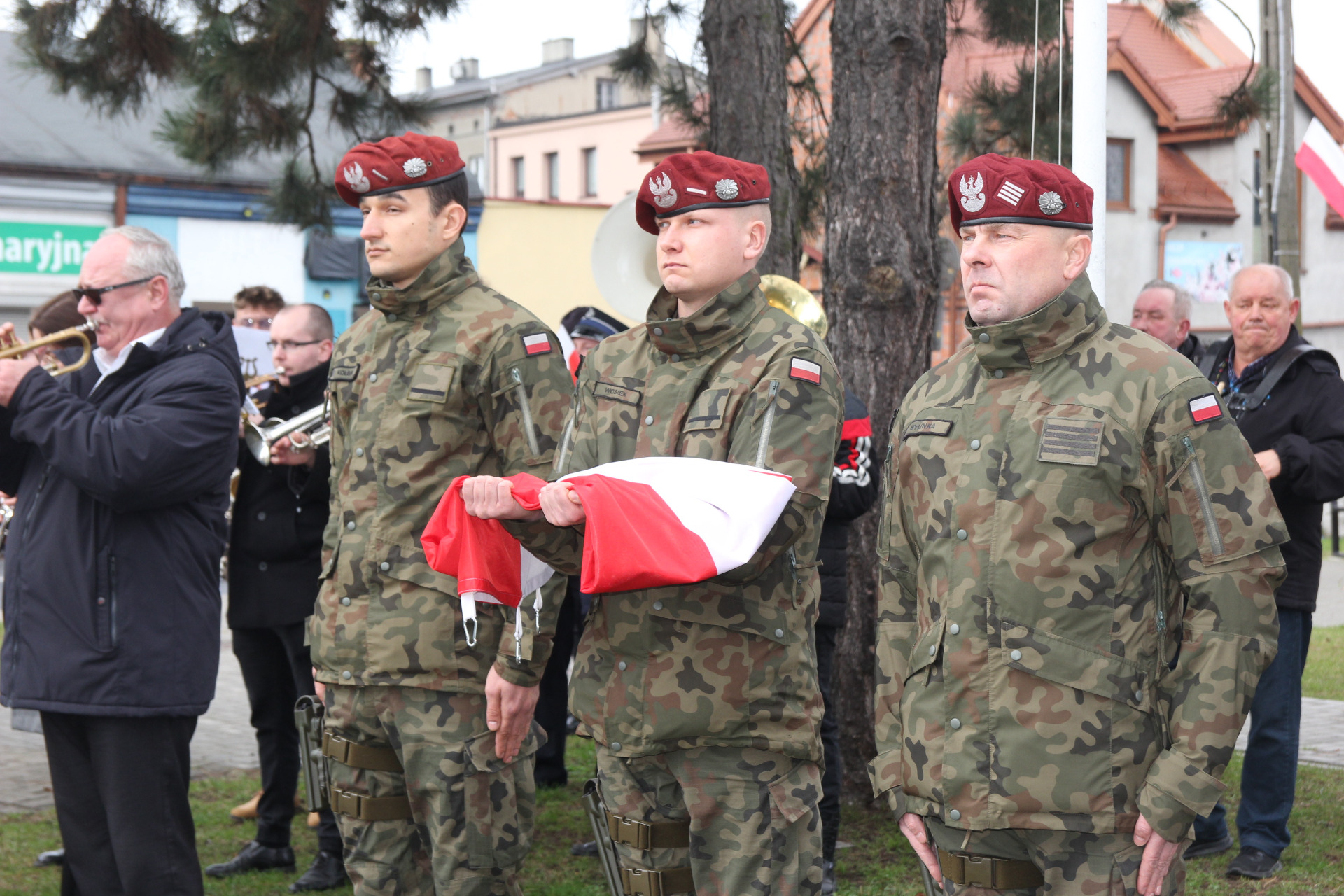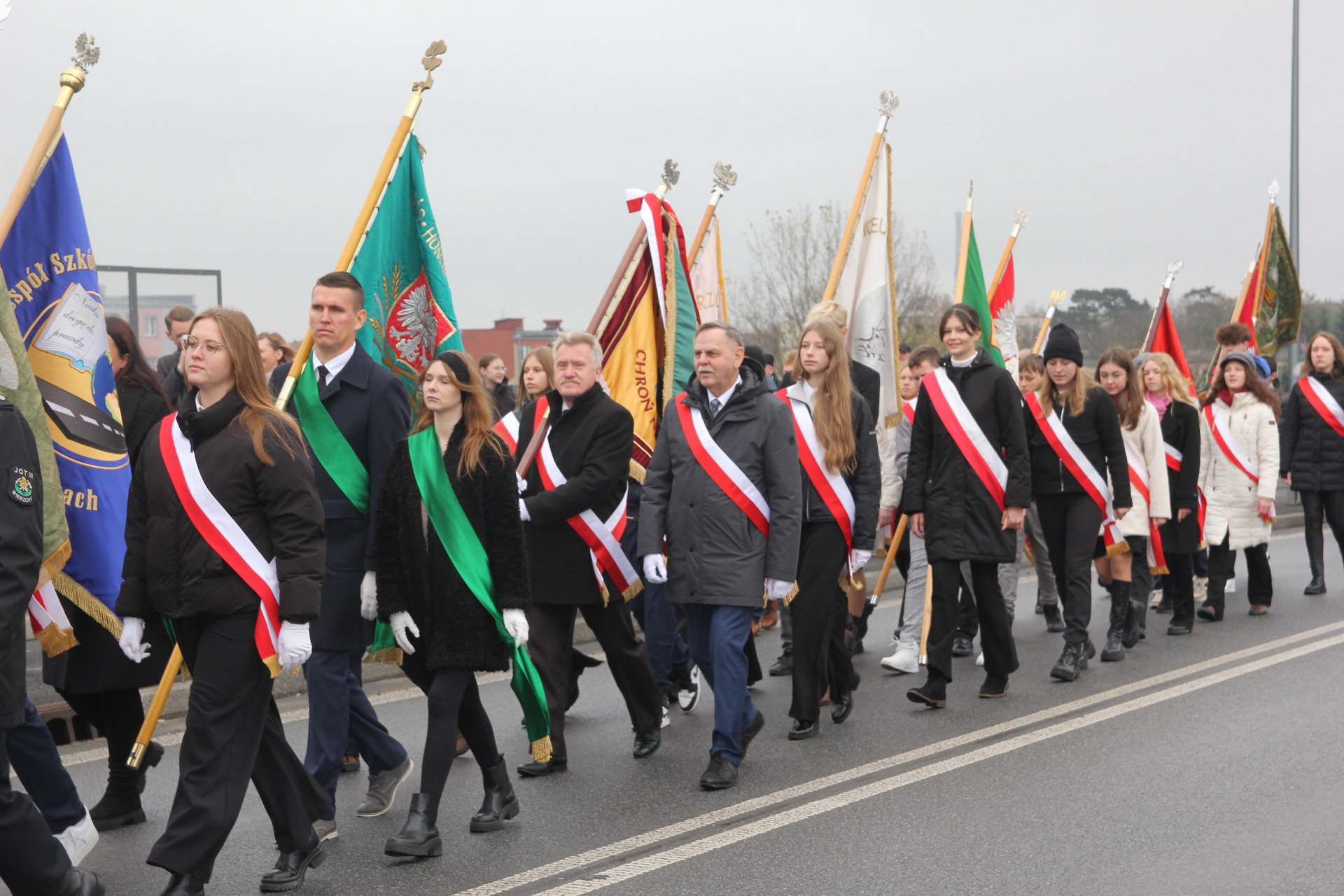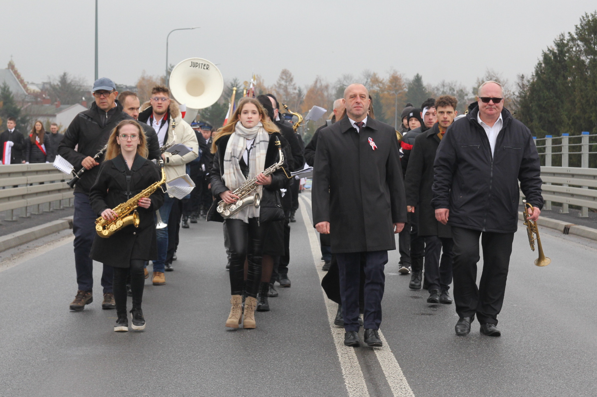Po mszy uformował się orszak, na czele którego szła orkiestra dęta OSP, harcerze, młodzież szklona, służy mundurowe, władze gminne i powiatowe oraz mieszkańcy. Główne uroczystości, z udziałem między innymi Waldemara Chałata burmistrza Koluszek, jego zastępcy Tomasza Krawczyka, Anny Szostak przewodniczącej Rady Miejskiej z radnymi, Mateusza Karwowskiego starosty Powiatu Łódzkiego-Wschodniego, Sławomira Sokołowskiego przewodniczącego Rady Powiatu z radnymi, przedstawicieli gminnych jednostek samorządowych, odbyły się pod pomnikiem Orła Białego.