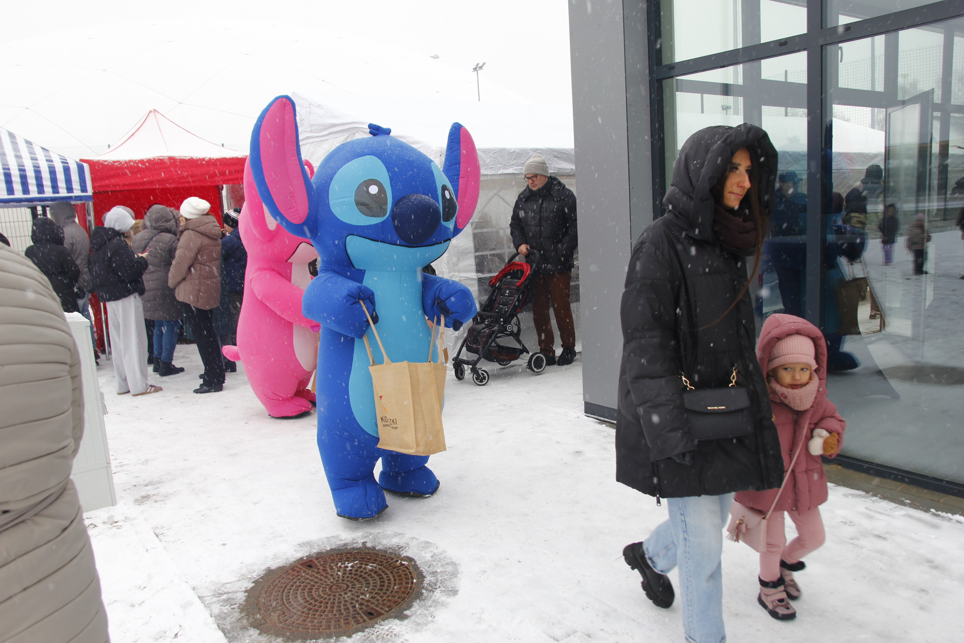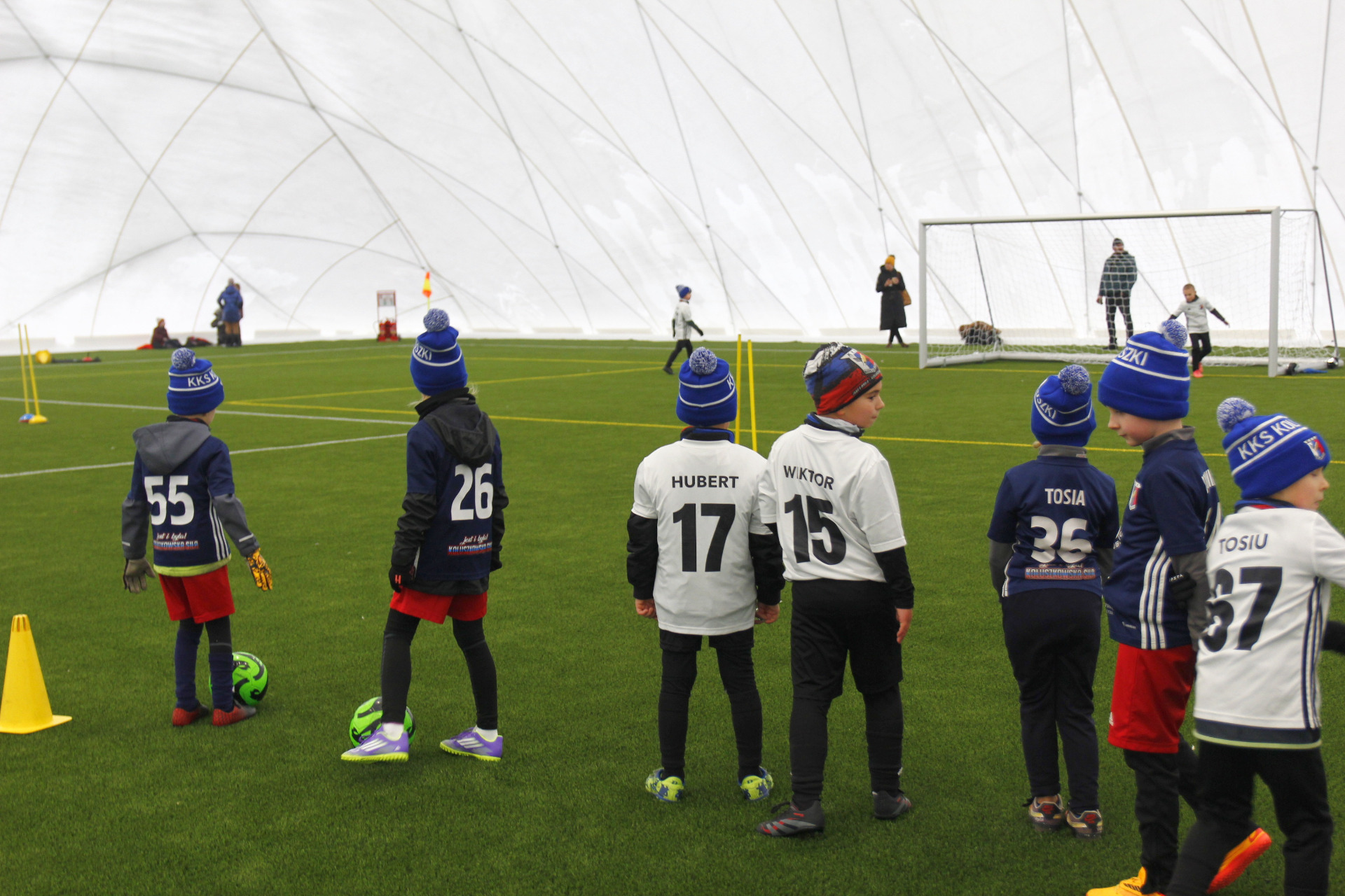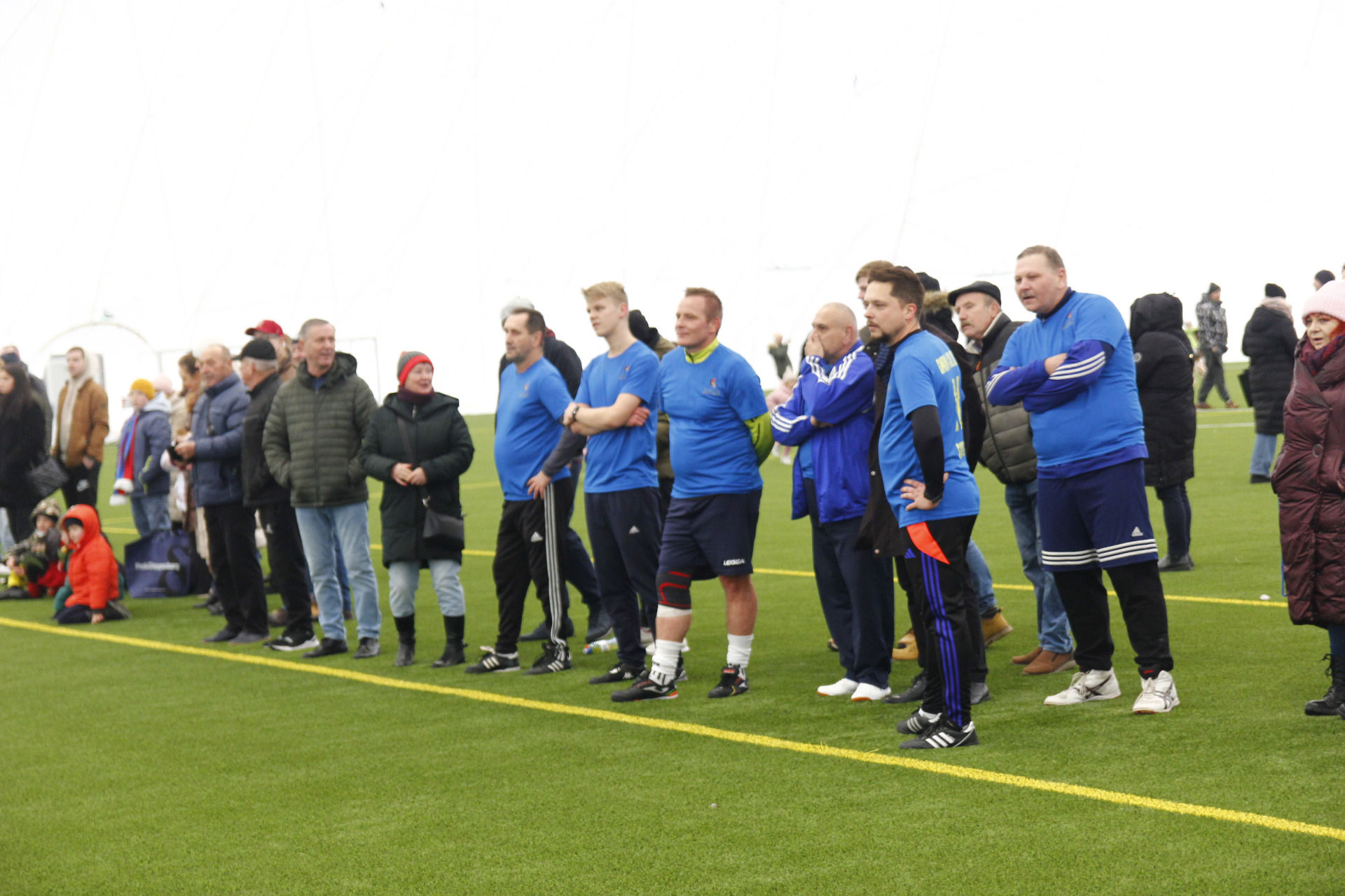 Co prawda zimowa aura zachęcała bardziej do urządzenia kuligu niż pikniku, ale w minioną niedzielę z pewnością dobrej zabawy nie brakowało na nowo otwartym stadionie przy ul. Zagajnikowej w Koluszkach. Mieszkańcy, którzy przyszli zapoznać się z obiektem częstowani byli grochówką i daniami z grilla. Do ogrzania się udostępniony został także nowy budynek klubowy. Ze względu na niskie temperatury cała zabawa przeniosła się pod balon, czyli do olbrzymiej hali pneumatycznej, która powstała poprzez przykrycie na czas zimowy boiska ze sztuczną nawierzchnią. Tam, poza możliwością pobawienia się piłką, zorganizowano także mecz pomiędzy reprezentacją Urzędu Miejskiego w Koluszkach a reprezentacją wykonawcy inwestycji. Spotkanie zakończyło się wynikiem 10:1 na korzyść reprezentacji naszej gminy. Wielką radość najmniejszym mieszkańcom naszej gminy przysporzyły także maskotki Sticha i Angel, które rozdawały słodycze i pozowały do zdjęć.