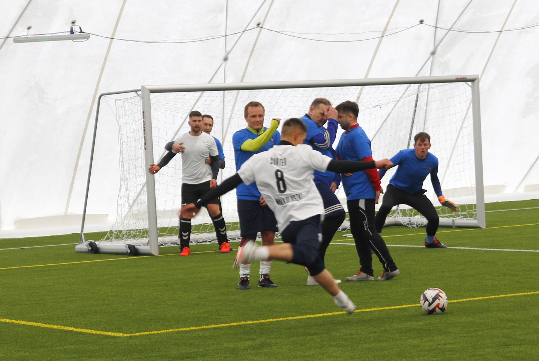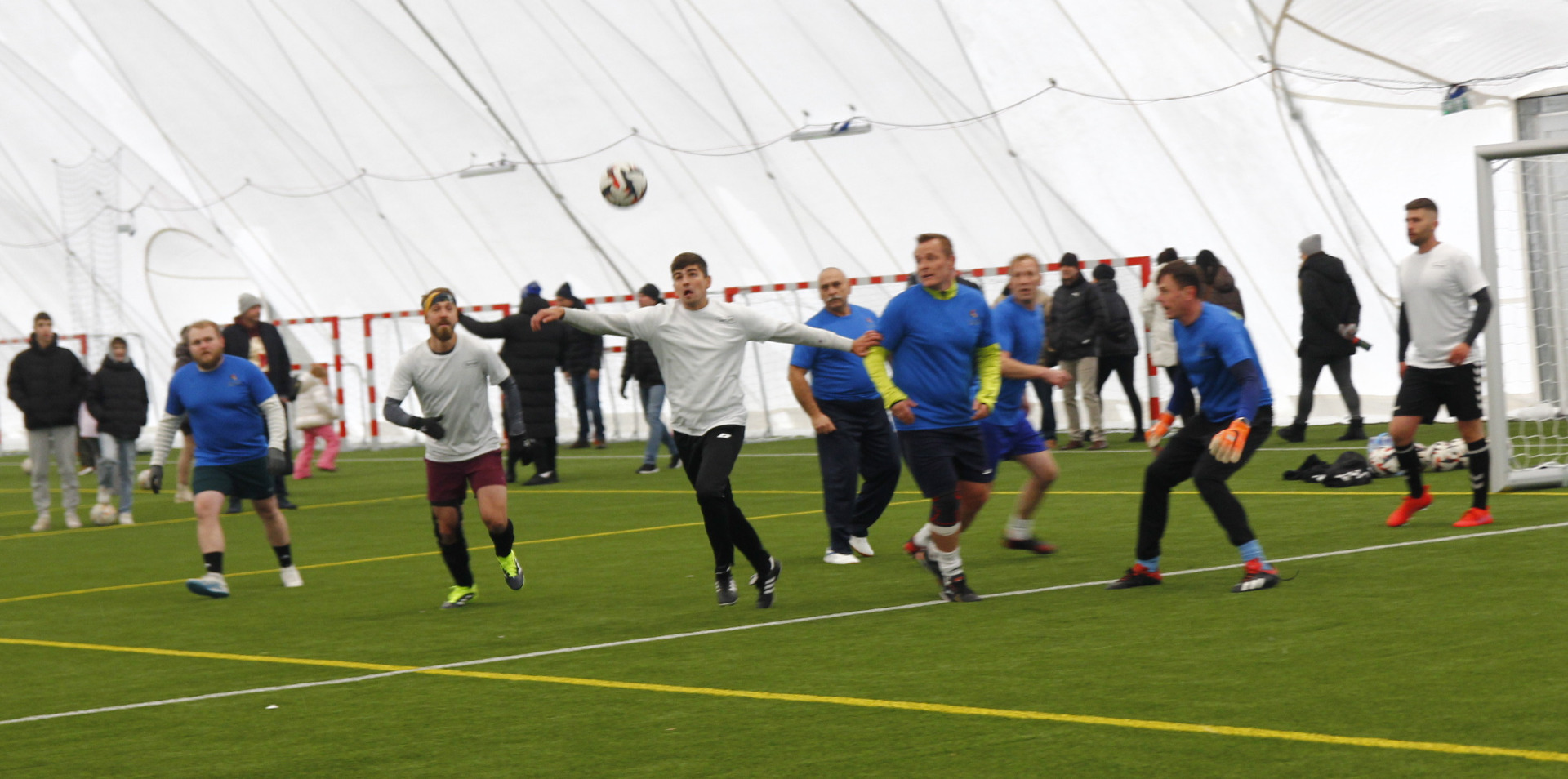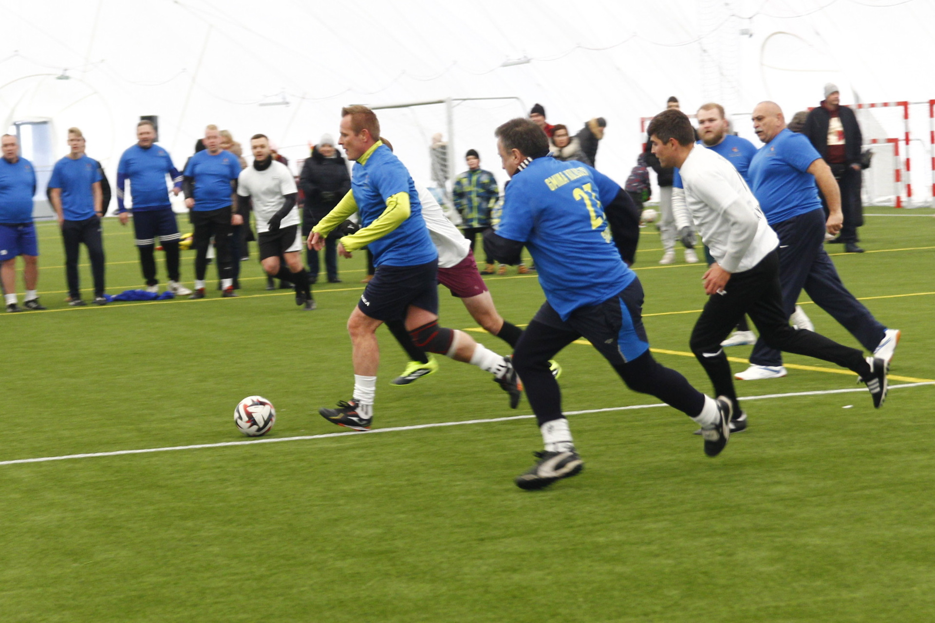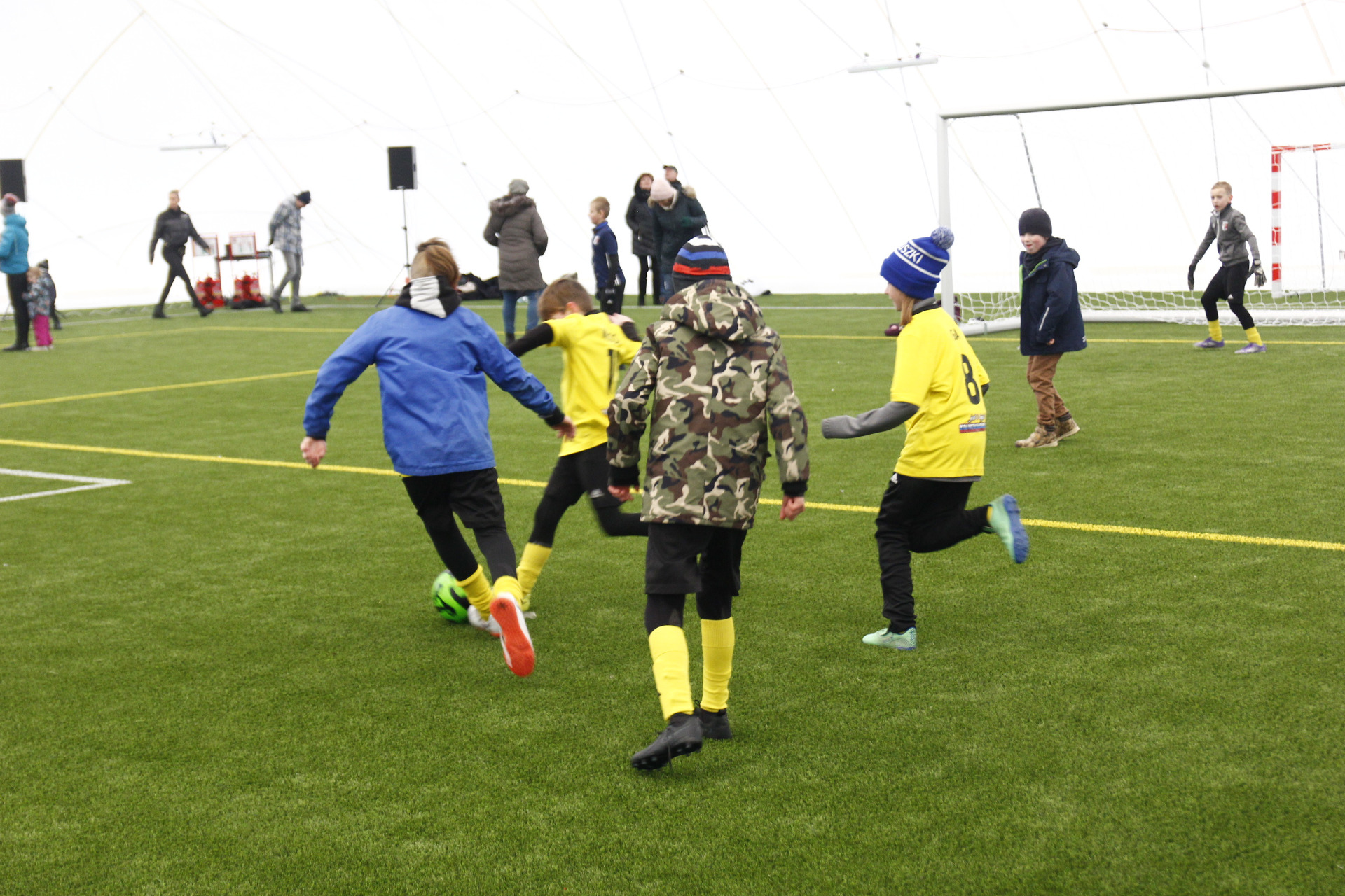 Co prawda zimowa aura zachęcała bardziej do urządzenia kuligu niż pikniku, ale w minioną niedzielę z pewnością dobrej zabawy nie brakowało na nowo otwartym stadionie przy ul. Zagajnikowej w Koluszkach. Mieszkańcy, którzy przyszli zapoznać się z obiektem częstowani byli grochówką i daniami z grilla. Do ogrzania się udostępniony został także nowy budynek klubowy. Ze względu na niskie temperatury cała zabawa przeniosła się pod balon, czyli do olbrzymiej hali pneumatycznej, która powstała poprzez przykrycie na czas zimowy boiska ze sztuczną nawierzchnią. Tam, poza możliwością pobawienia się piłką, zorganizowano także mecz pomiędzy reprezentacją Urzędu Miejskiego w Koluszkach a reprezentacją wykonawcy inwestycji. Spotkanie zakończyło się wynikiem 10:1 na korzyść reprezentacji naszej gminy. Wielką radość najmniejszym mieszkańcom naszej gminy przysporzyły także maskotki Sticha i Angel, które rozdawały słodycze i pozowały do zdjęć.